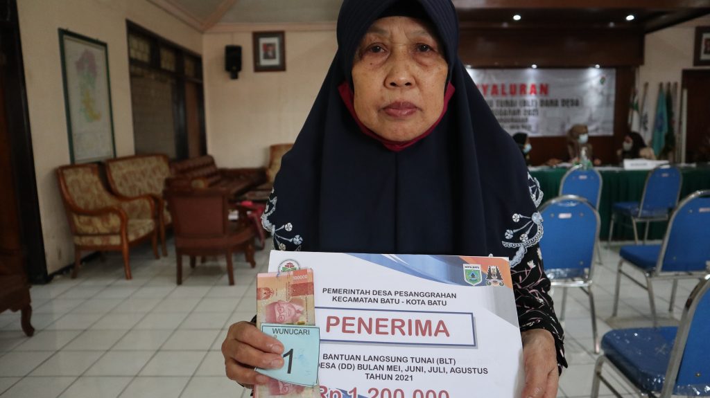 KIM Mayangsari – Pemerintah Desa Pesanggrahan pada Kamis (05/08/2021) menyalurkan Bantuan Langsung Tunai Dana Desa (BLT DD) sebagai upaya membantu masyarakat di tengah kondisi ekonomi sulit di masa pandemi Covid-19. Bertempat di Aula Kantor Desa Pesanggrahan. Penyaluran BLT DD di Desa Pesanggrahan dilaksanakan dengan protokol kesehatan secara ketat, serta dengan ketentuan apabila KPM sedang menjalani isolasi mandiri atau dalam keadaan tidak sehat akan diantarkan oleh perangkat Desa ke rumah KPM bersangkutan.